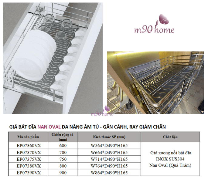 Giá úp bát đĩa nan oval Inox 304 cho tủ bếp dưới Eurogold, Phụ Kiện Tủ Bếp Thông Minh M90home