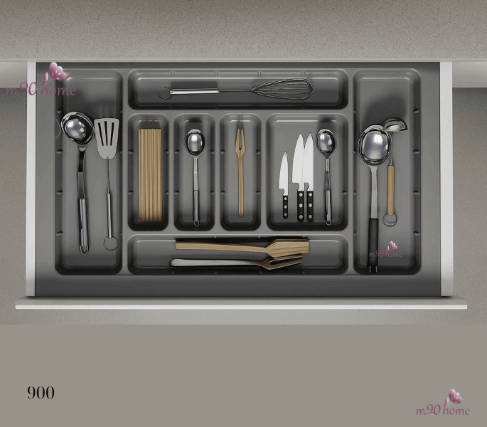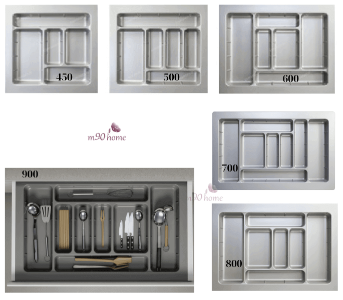 - Chia các ô riêng biệt để xếp thìa – muỗng – dao – nĩa – đồ sơ chế