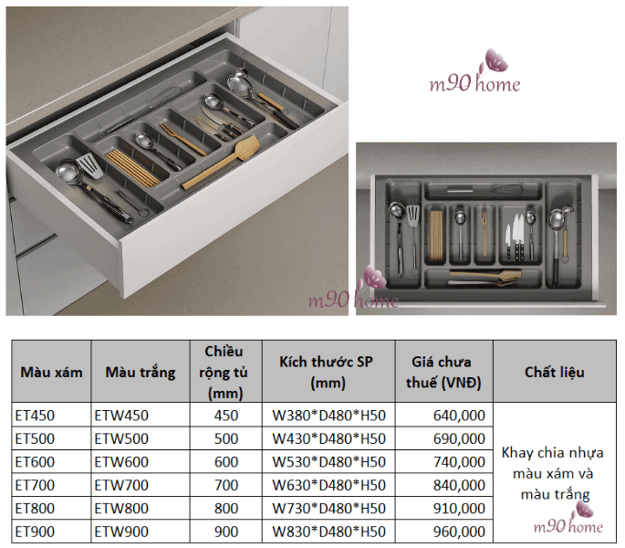 Gợi ý: Khi mua bạn nên đo kích thước lọt lòng của ngăn kéo để chọn khay khớp nhất.