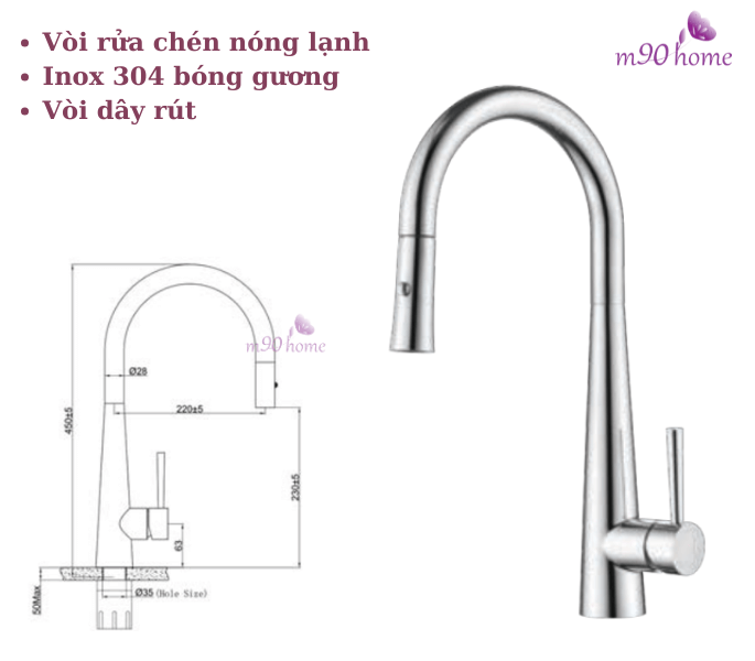 - Chậu rửa chén bát, Vòi rửa chén nóng lạnh bằng đồng dây rút M01, vòi rửa chén nóng lạnh bằng đồng,…